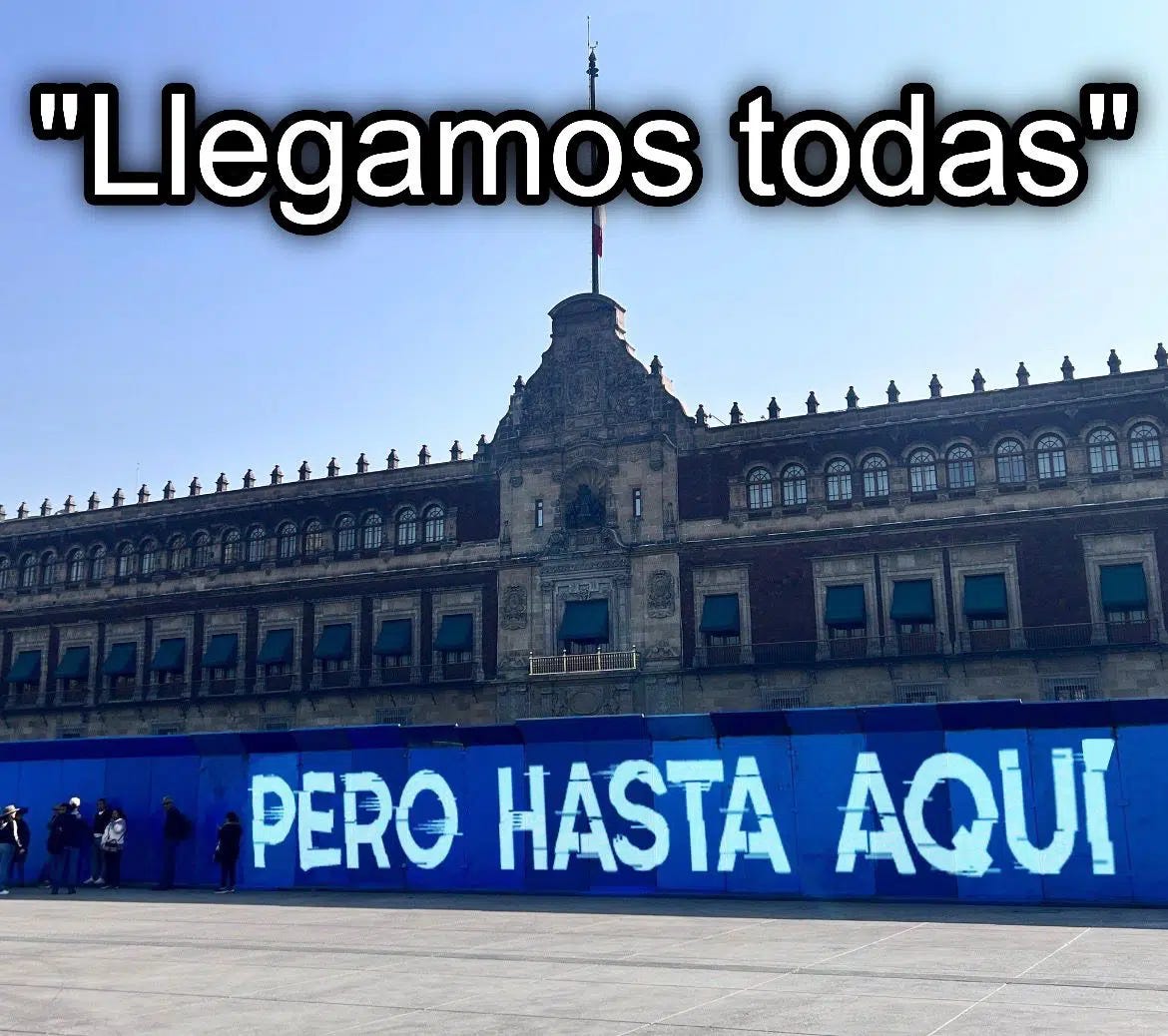 Hoy no se trata de partidos, de la Transformación o de nuestros privilegios. Hoy solamente observamos y, por un lado, vemos a una PresidentA con A (siguiendo órdenes de Trump y el Macuspano) que afirma que llegamos todAs (las que piensan como ella), que creó una Secretaría de Mujeres (sin quedarnos claro de qué sirve), que insiste que es tiempo de Mujeres (mientras no seas una madre buscadora). Y el discurso es muy bonito, pero ayer vimos a miles y miles de mujeres que tomaron las calles para dejar en claro que, entre las palabras de Claudia y la realidad, hay un mundo de diferencia. Prueba de eso, lo que pasó ayer: mientras miles de mujeres se manifestaban frente a su Palacio, la PresidentA hacía un evento del Día de la Mujer en el Campo Marte con… los militares? Con 9 feminicidios al día, evidentemente no “llegaron todas”, evidentemente en México “las mujeres sí lloran” y ni siquiera facturan.
