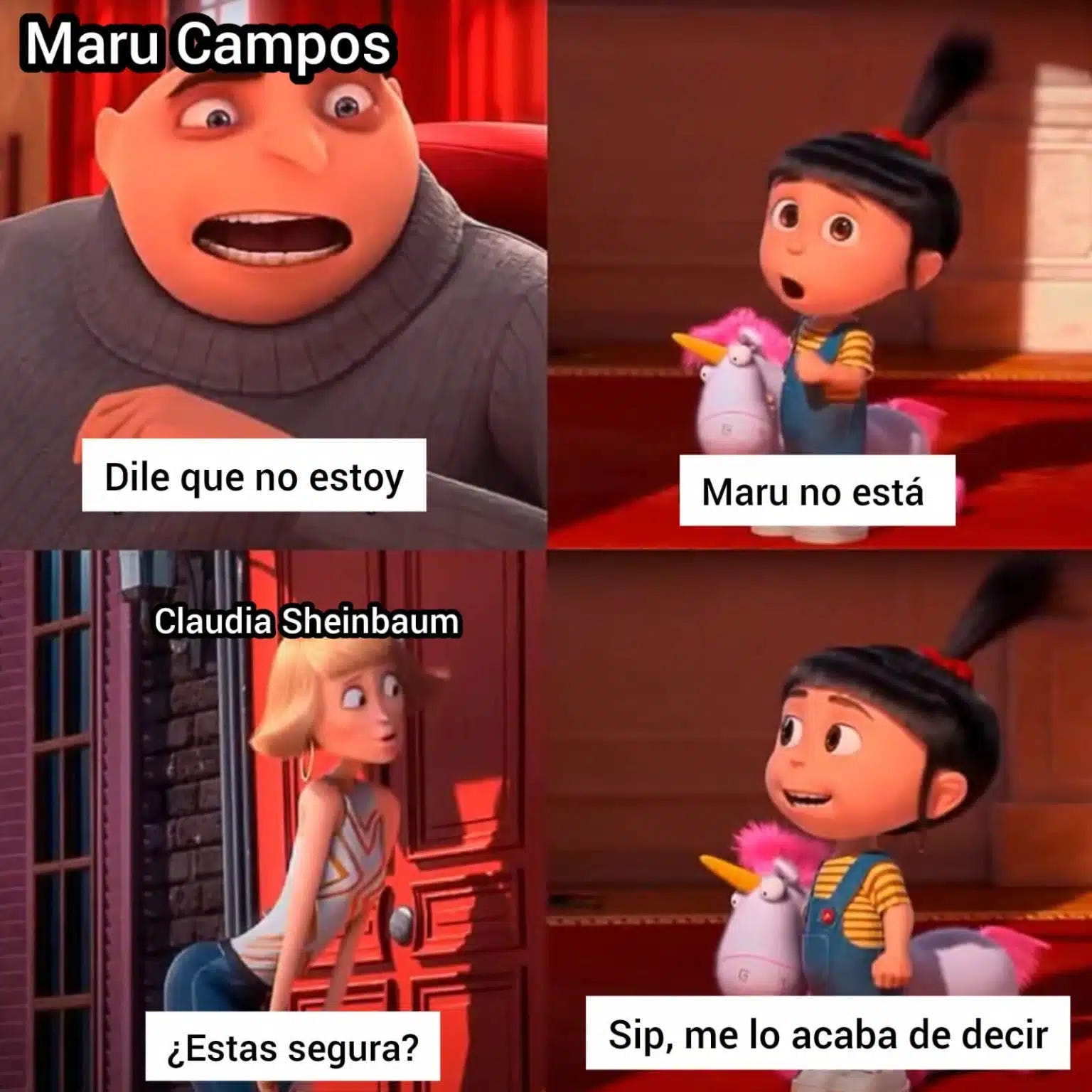 Resulta que Clau ayer estuvo intentando llamar a la gobernadora shihuahueña para que le explicara por qué había agentes de la CIA en la sierra sin ningún permiso… Pero se quedó bien vestida y alborada porque Maru la mandó directito a buzón. Mientras espera a ver si la señora le contesta, Shamebee ya mandó también una notita diplomática a los gringos para que no anden haciendo amiguis y violando nuestra soberasnía. Con todo este desmadre, a Maruca le tocó ir a la Sedemequis este jueves para explicarle al Rambo Harfuch qué fue lo que pasó. Entre Luma diciéndole “lo checo y te aviso” y Maruca dejándola con palomitas azules, creemos que no le vendría mal un cursito de liderazgo en la Anáhuac a la Doctora.