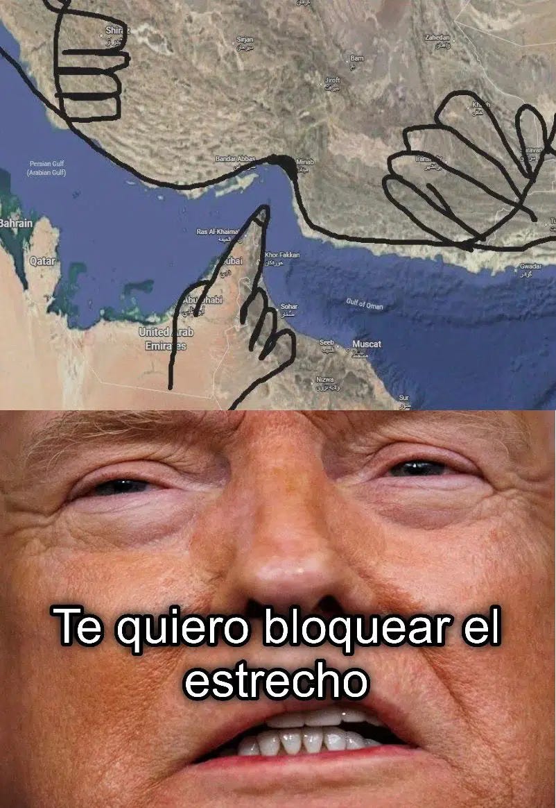 Ni la última relación del intern fue tan fugaz como la supuesta paz que había logrado negociar Trump con Irán. El issue, creemos, fue que Trump mandó a JD Vance a Islamabad a impulsar las pláticas y ahí se terminó de joder la situación, pues Estados Unidos reconoció que ambos bandos tenían posiciones incompatibles. En esas estábamos cuando redepente al Mr. Cheeto le pareció buena idea decir que estaba cansado de que el Hay-Atole le cerrara el Estrecho, así que él haría exactamente lo mismo. Según Donald, desde este lunes los Marines gringos van a cerrar el Estrecho de Ormuz, o sea van a detener a todos los buques petroleros que intenten pasar por la zona. Y como la zona es controlada, de ley, por Irán, Washington ya dijo que le mandará una dosis masiva de abrazos a todos los patrulleros iraníes que ataquen a embarcaciones pacíficas. Básicamente con esta medida, Trump está diciendo que si se muere Estados Unidos con precios de la gasolina por las nubes, el resto del planeta nos vamos con ellos.