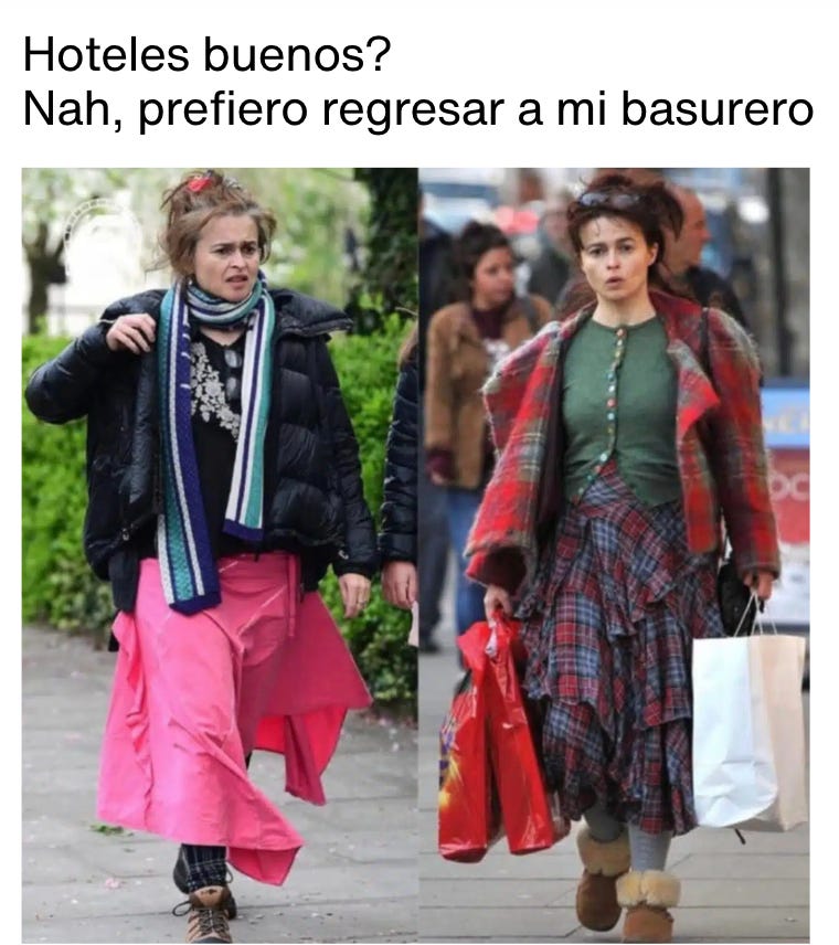 Resulta que Helena Bonham Carter (o sea, Bellatrix Lestrange en Harry Potter) decidió renunciar a la cuarta temporada de la serie… después de que habían empezado a grabarla. A lo Chavo del 8, la actriz se fue del set por “diferencias creativas con los guionistas” o algo así. Todo empezó como un rumor que sacó uno de esos medios gringos de chismes, que la neta nunca fallan y más tarde, HBO salió a confirmar que era neta. Según la productora van a reescribir al personaje por completo porque lo habían hecho específicamente para que lo interpretara ella. A ver si no nos aplica la misma el intern en un par de días que le digamos que no hubo PTU este año…