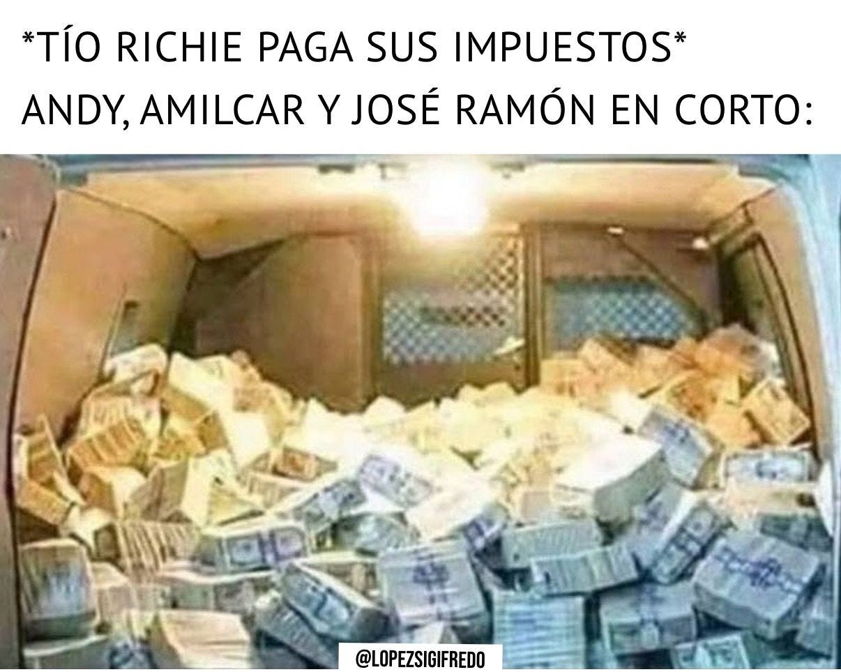 Al Chaz Chaz. Llegó uno de los días más felices de la historia en el calendario chairo nacional. Y no nos referimos al día de pago de las Becas del Bienestar… pero casi. Resulta que ayer el SAT informó que las empresas del Tío Richie finalmente aceptaron pagar los impuestos. De los $79mil millones que Claudia dijo que debían según sus cálculos doctorales, resulta que realmente solo tenían que pagar $32mil millones, de los cuales el Tío ya pagó $10mil melones y va a termnar de pagarlos en los próximos meses. La queja en este país es que nunca sabemos dónde van a parar nuestros impuestos, pero esta vez nos queda bien claro dónde: a Palenque para que un señor que vive por allá lo distribuya entre sus hijos, que después irán a Prada, Hermes y Loro Piana a quemarselo… the circle of life. (link: Al Chaz Chaz! )